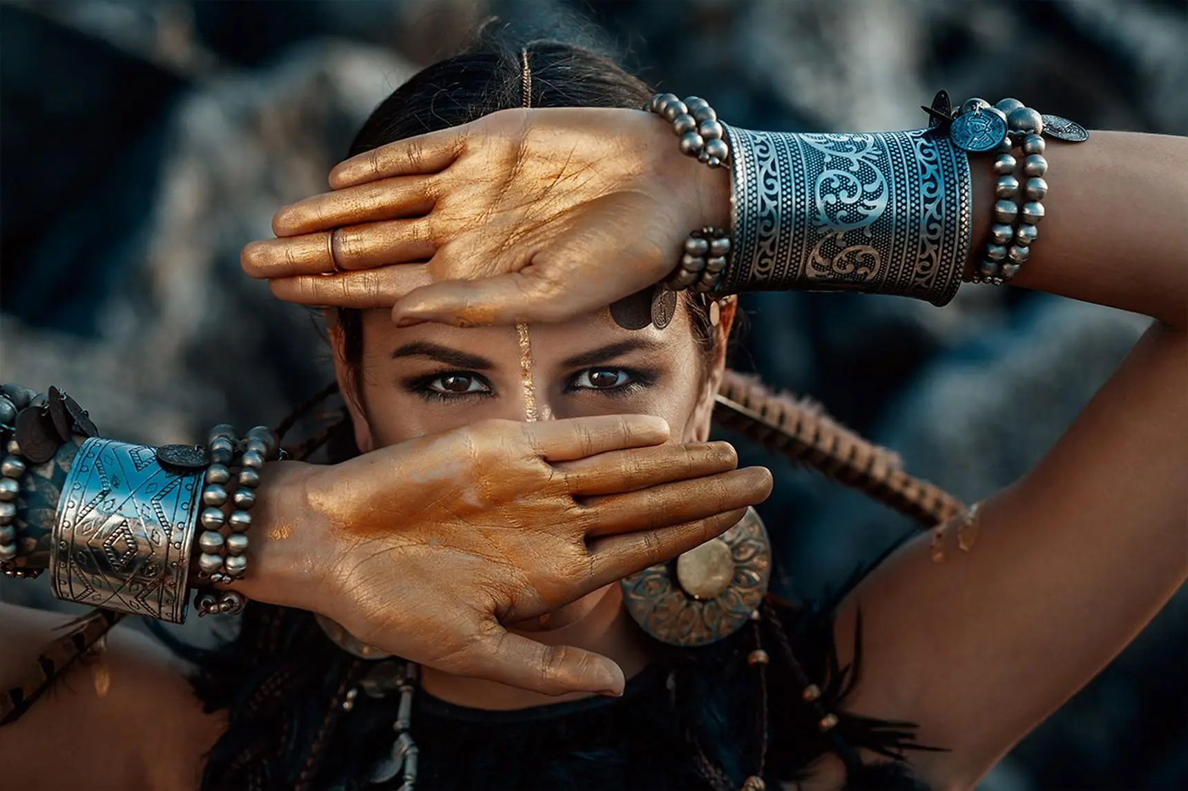 Gemälde einer schönen Frau mit einem symbolischen allsehenden Auge. In vielen Kulturen symbolisiert das Auge Schönheit, Schutz und Weisheit. Es gilt als Spiegel der Seele. Das Plexiglasbild „Allsehende Augen II“ zeigt eine indigene Frau mit großen, weit geöffneten Augen. Das allsehende Auge stammt aus dem alten Ägypten und verweist auf den Sonnengott Horus. In der antiken Mythologie bringt das Auge Glück. Dieses Foto auf Plexiglas aus der Kultursammlung zeigt eine Stammesfrau mit spiritueller Einsicht, hohem Wissen und einer Gabe für okkulte Mysterien. Ihre Kleidung unterstreicht ihren hohen Status. Die schöne Asiatin bedeckt große Teile ihres Gesichts mit ihren Händen, sodass ihre ausdrucksstarken Augen den Betrachter mit voller Überzeugung ansehen. Ein Gemälde mit Symbolik der Widerstandsfähigkeit. Bevorzugen Sie diese schöne Asiatin in Schwarz-Weiß? Dann sehen Sie sich die Version „Allsehende Augen“ an. Auch erhältlich bei akustikbild und Dibond sowie weiteren Anbietern.