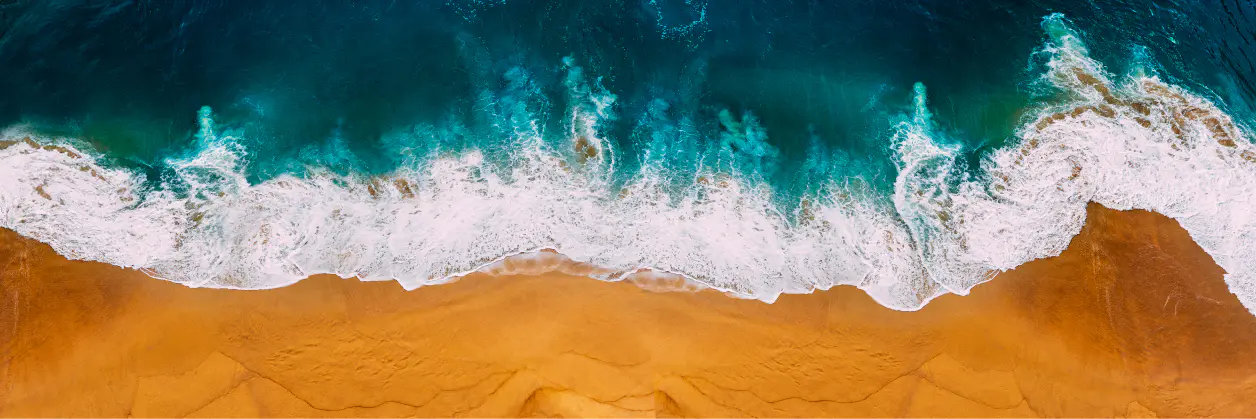 Ein leuchtendes Strandfoto mit gelbem Strand, Wellen und Meer. Ein fast abstraktes Kunstwerk des Meeres, erhältlich auf verschiedenen Materialien wie Acrylglas, Dibond und akustikbild . Entdecken Sie neben diesem Strandwandbild auch unsere gesamte Landschaftskollektion: Landschaftskollektion