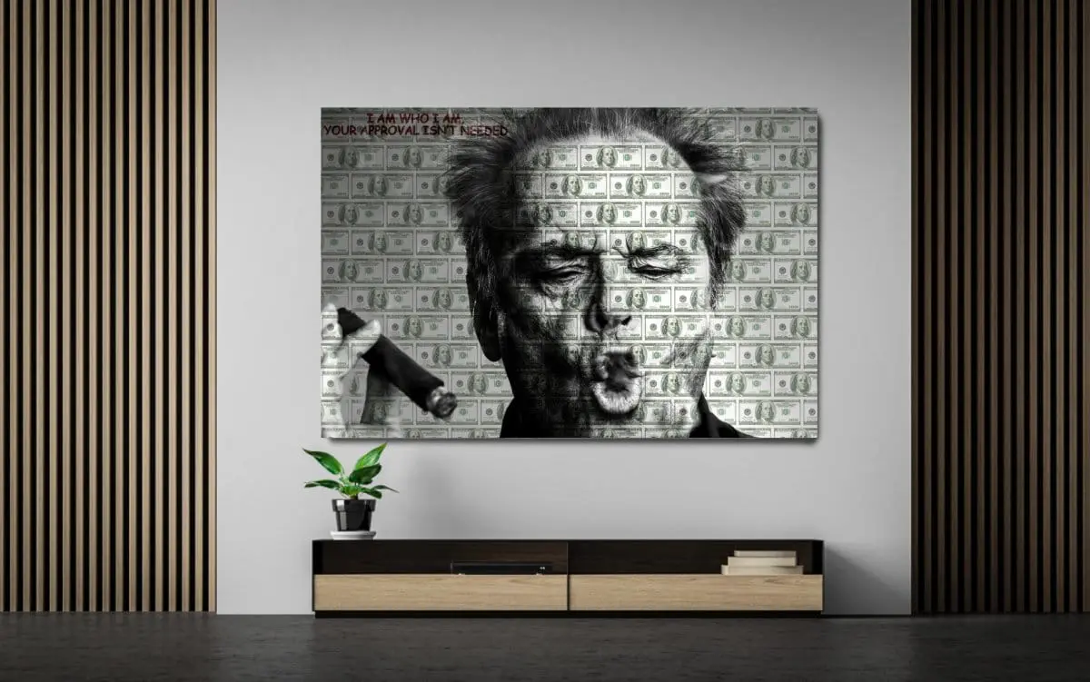 La decoración de pared en plexiglás aporta a su interior un aspecto moderno y lujoso. Gracias al acabado brillante y transparente, los colores y detalles de su obra se destacan al máximo, y el material crea una profundidad especial. En el caso de una obra oscura en un espacio con mucha luz solar, se puede optar por una decoración de pared con acabado mate (Dibond) para reducir los reflejos.