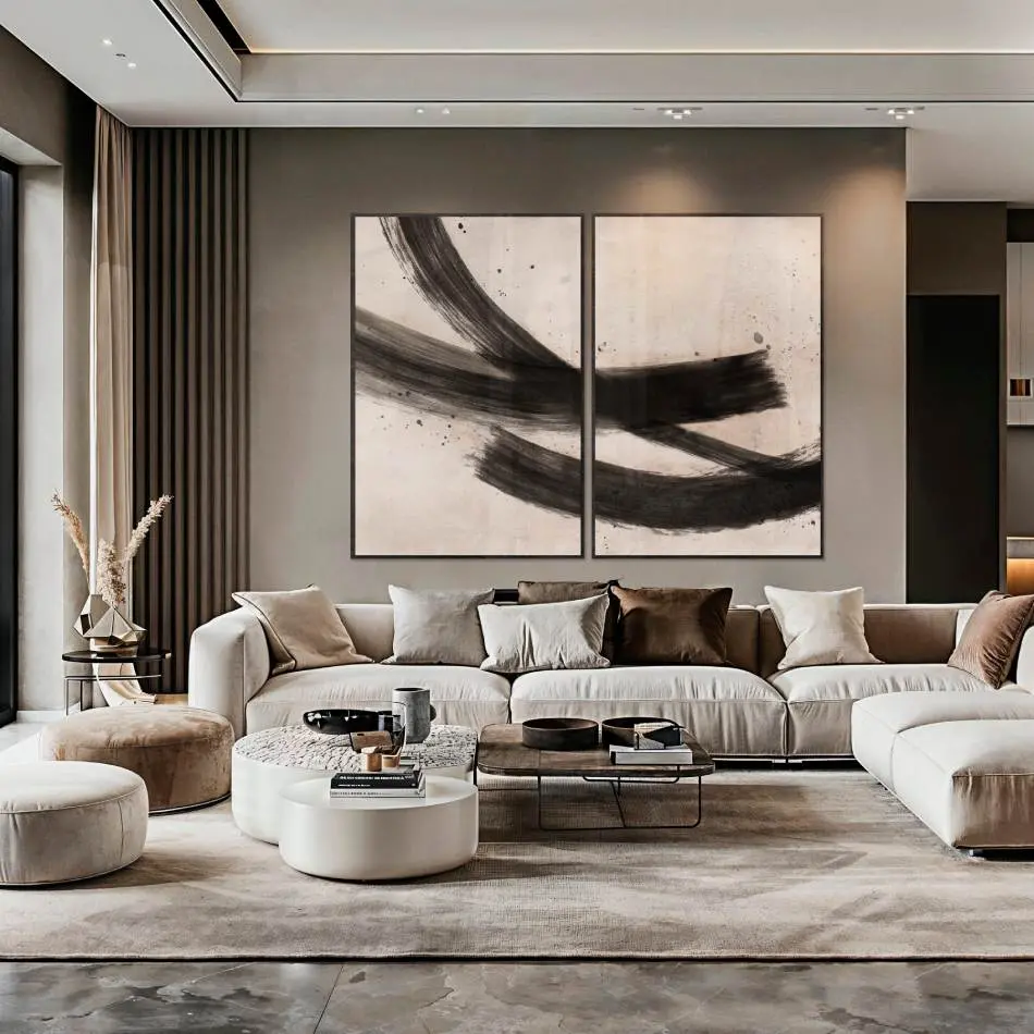 Akoestisch doek is een speciaal ontworpen materiaal dat geluid absorbeert en tegelijkertijd als stijlvolle wanddecoratie dient. Het combineert esthetiek met functionaliteit, waardoor het perfect is om zowel je interieur te verfraaien als de akoestiek in een ruimte te verbeteren tot wel 75%. Door de vilt textuur zijn de kleuren zachter dan bij plexiglas of dibond, wat vooral prachtig uitpakt bij abstracte en rustige werken. Met akoestische wanddecoratie verbeter je de geluidsbeleving in je huis of kantoor. Het doek dempt nagalm en storende geluiden, terwijl het kunstwerk een elegant statement maakt. Zo creëer je een rustige en harmonieuze sfeer met een chique geluiddempend schilderij.